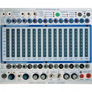 The Buchla 296e Spectral Processor is a 16 channel bandpass filter and spectral analyzer. With advanced synthesis capabilities the 296e can be split into 8 bandpass filters and can be used to dial in envelopes on the fly, making a great tool for live use.