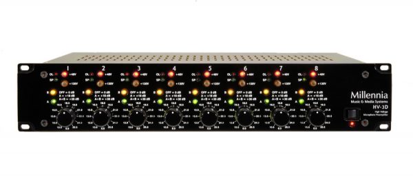 The Millennia HV-3D8 is an eight channel, fully matched microphone preamplifier of uncompromising sonic character, technical specification, and mechanical workmanship. The HV-3D offers multiple channels of HV-3C preamplifiers at significantly less per-channel cost.